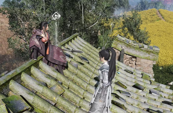 拾取信件后,玩家需要再次传送到怒马庄传送点,此次目标是前往箭头指示处的屋顶。抵达屋顶后,找到NPC“时九歌”并与其对话,将拾取的信件交给对方,完成剧情交互。对话过程中无需选择特定选项,完整完成对话后,任务指引会更新,提示前往图中方框标记的位置,这一步需仔细观察地图标识,避免走错路线。